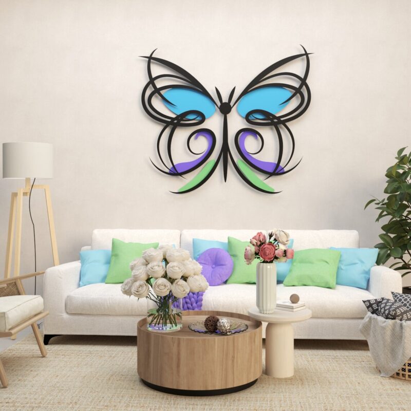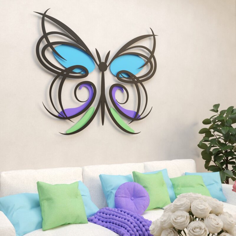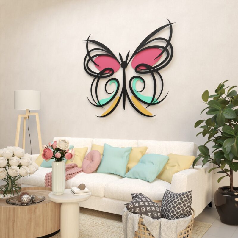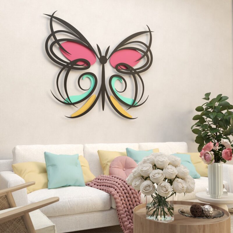 این دیوارکوب چوبی دارای طراحی ظریف و سیال از بالهای پروانه است که به سبک مدرن و دکوراتیو ساخته شده است. ترکیب رنگهای شاد و متنوع در این اثر، جلوهای زنده و پرانرژی به دیوار شما میبخشد.