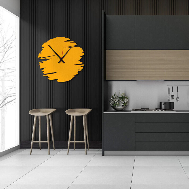 عقربههای طلایی و قرمز با طراحی ظریف، تضاد زیبایی با پسزمینهی ساعت ایجاد کردهان و باعث میشن در عین خاص بودن، خوانایی مناسبی هم داشته باشه. یک انتخاب عالی برای دوستداران سبکهای مدرن، انتزاعی و دکورهای خاص.