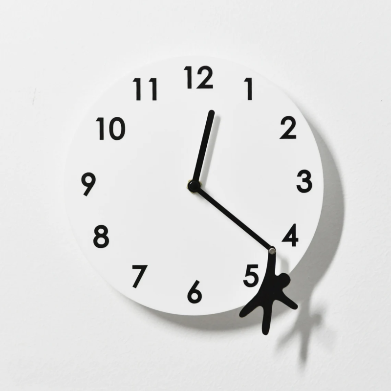 صفحه سفید و سادهی ساعت، با اعداد مشکی و خوانا طراحی شده تا تمرکز روی جزئیات اصلی حفظ بشه. اما نقطهی تمایز واقعی این ساعت، عقربه دقیقهشمار خاص اون هست که یه آدمک کوچک بهش آویزونه؛ انگار داره از زمان جا میمونه یا برای گرفتن لحظهها تلاش میکنه! همین جزئیات ساده ولی بامزه، این ساعت رو به یه اثر هنری دیواری تبدیل کرده.