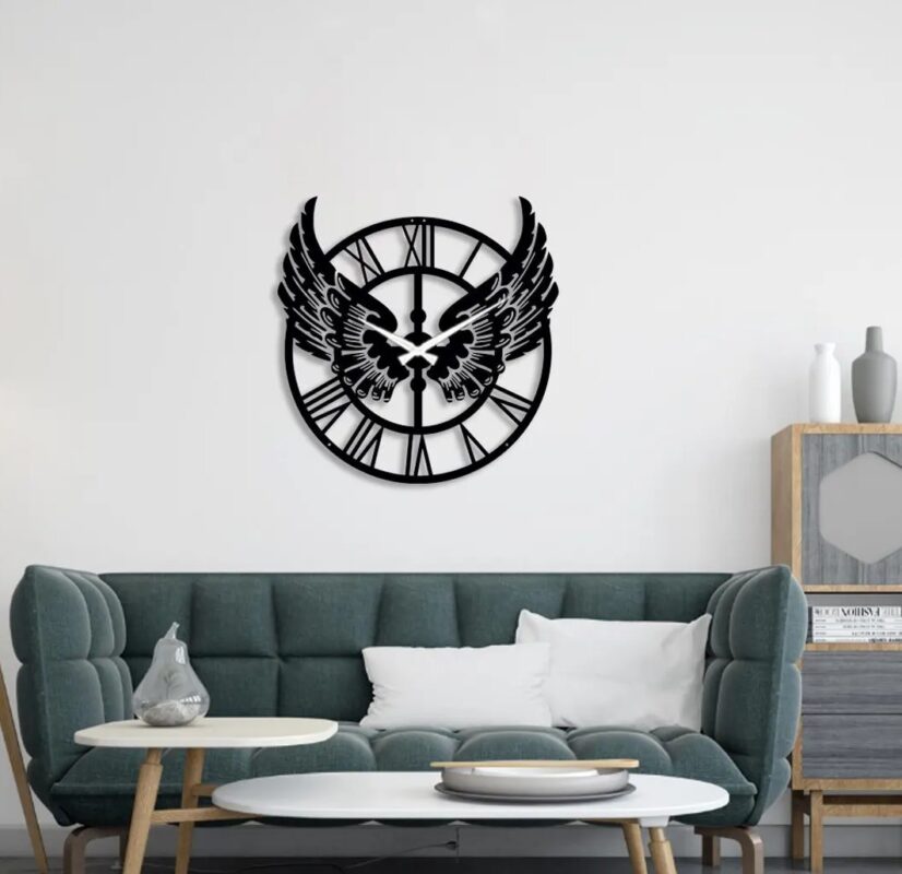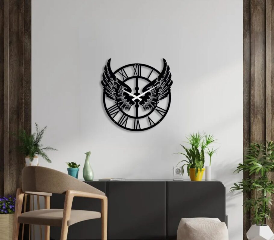 ساعت دیواری طرح بال و عقاب میتواند در فضاهای مختلف به زیبایی جلوه کند: