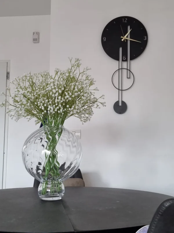 این محصول از چوب سهلایه با ضخامت 3 میلیمتر ساخته شده و طراحی آن بر اساس ساعتهای پاندولی کلاسیک است، اما در قالبی مدرن و مینیمال ارائه شده است. عقربههای ظریف و خطوط ساده صفحه نمایش، جلوهای خاص به این ساعت دادهاند که آن را برای دکوراسیونهای مدرن، مینیمال و اسکاندیناوی کاملاً مناسب کرده است.