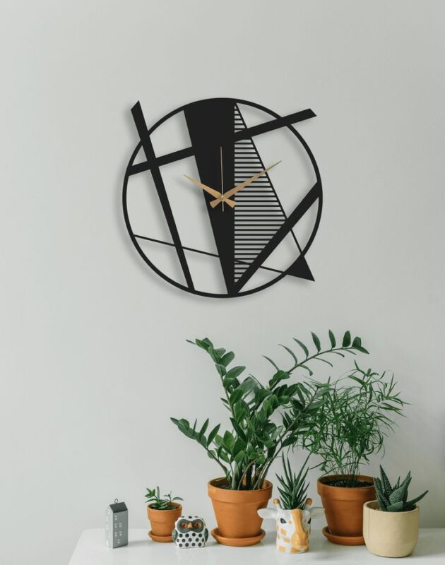 این ساعت از چوب سه لایه با ضخامت ۳ میلیمتر ساخته شده و طراحی کلی اون ترکیبی از فرمهای هندسی مدرن با ساختار باز و خلوت هست. رنگ بدنه مشکی مات بوده و عقربهها به رنگ طلایی انتخاب شدن که جلوه لوکس و مدرنی به محصول داده. ابعاد ساعت برای دیوارهای متوسط و بزرگ مناسبه و وزن سبک اون نصب راحتی رو فراهم کرده. 🪵🕒