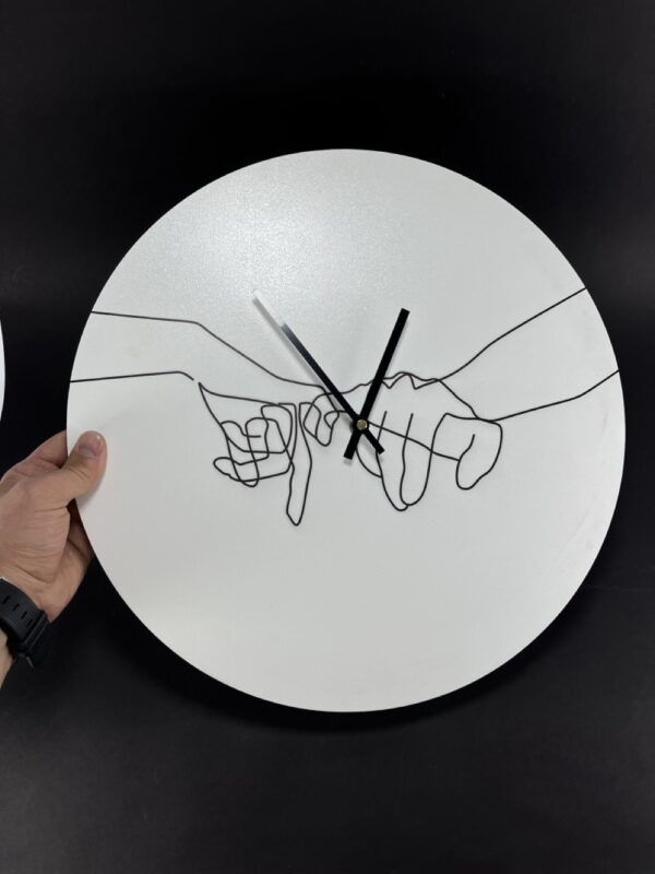 این محصول جدید و خاص با استفاده از متریال ام دی اف و در ابعاد 40 در 40 ساخته میشود ساعت گردی با پس زمینه ی دو دست که به هم وصل هستند بسیار شیک است و طراحی خاصی دارد .جهت سفارش این محصول در ابعاد دلخواهتان میتوانید با شماره های موجود در سایت تماس بگیرید .