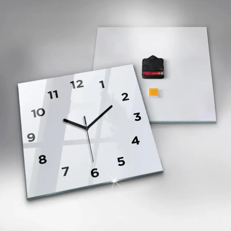 ساعت از پلکسی سفید براق با ضخامت ۳ میلیمتر ساخته شده که هم سبک و بادوامه، هم بهراحتی تمیز میشه. اعداد یا نشانگرهای مشکی روی پسزمینهی سفید، خوانایی بالا و کنتراست چشمنوازی ایجاد کردن. طراحی در دو مدل: یکی با خطوط ساده (بدون اعداد) و دیگری با اعداد کامل برای سلیقههای مختلف قابل سفارشه 🖤