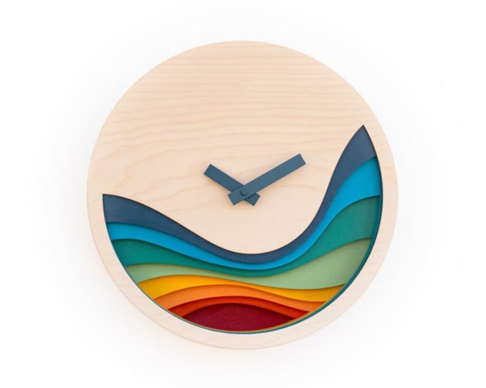اگر دنبال یک ساعت دیواری خاص و متفاوت برای دکور خانه یا محل کار هستی، ساعت دیواری چندلایه رنگارنگ یک انتخاب مدرن و چشمگیر برای سلیقههای خاص است! طراحی این ساعت الهامگرفته از موجهای رنگی و طبیعت است که هر لایه آن با دقت و ظرافت از چوب سه لایه برش خورده و با رنگآمیزی دستی به زیبایی هر چه تمامتر در کنار هم قرار گرفتهاند. این سبک طراحی، به ساعت جلوه سهبعدی و منحصربهفردی میدهد که در هر فضایی بدرخشد. 🌈⏰