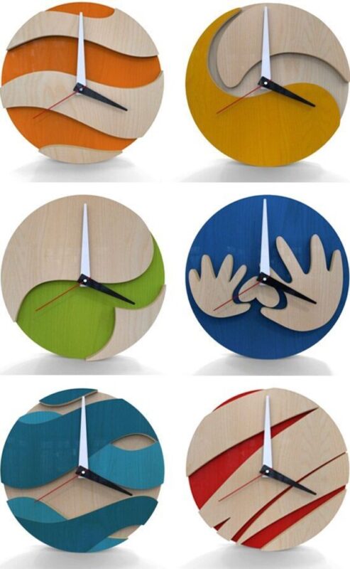 هر ساعت با ترکیب لایههای چوبی و رنگآمیزی دستی ساخته شده که باعث شده هر کدوم از این ساعتها یه اثر هنری منحصربهفرد باشن. استفاده از رنگهای متنوع مثل نارنجی، آبی، سبز، زرد و قرمز در کنار بافت طبیعی چوب، انرژی و گرمای خاصی رو به فضا منتقل میکنه. موتور روانگرد بیصدا و عقربههای ظریف باعث شدن علاوه بر زیبایی، کارکردی عالی هم داشته باشه.