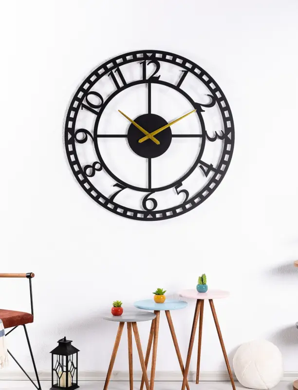 ساعت دارای فریمی باز و دایرهای شکل با اعداد برجسته در موقعیتهای ۳، ۶، ۹ و ۱۲ است. بدنه مشکی براق با پلکسی و عقربههای طلایی درخشان، ظاهری کلاسیک اما بسیار شیک و مدرن به آن بخشیده است.