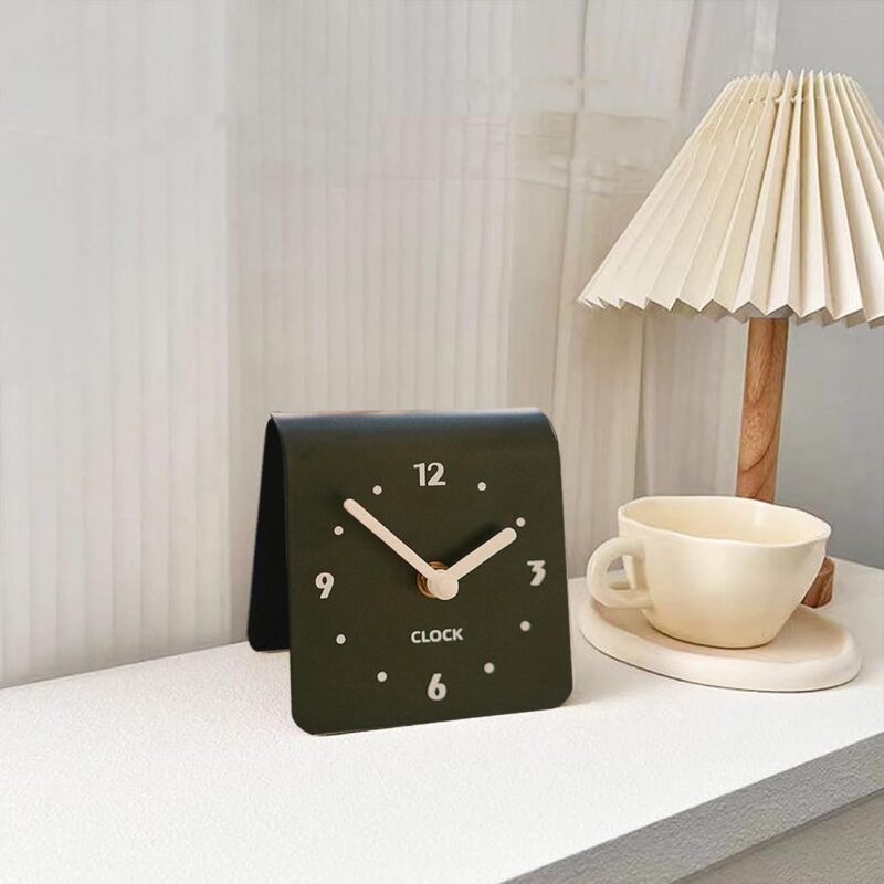 طراحی این ساعت بهصورت ایستاده و رومیزی بوده که بدون نیاز به پایه اضافی، تعادل و استحکام بالایی روی سطوح مختلف دارد. عقربههای ظریف و خوانا، نمایشگر اعداد ساده و استایل خمیده، باعث شده که این محصول علاوه بر یک ابزار کاربردی، به یک المان دکوراتیو زیبا نیز تبدیل شود.