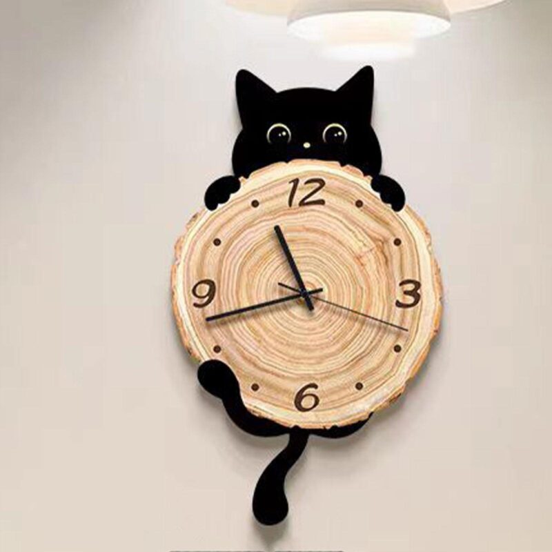 ساعت چوبی طرح گربه میتواند در فضاهای مختلف به زیبایی جلوه کند: