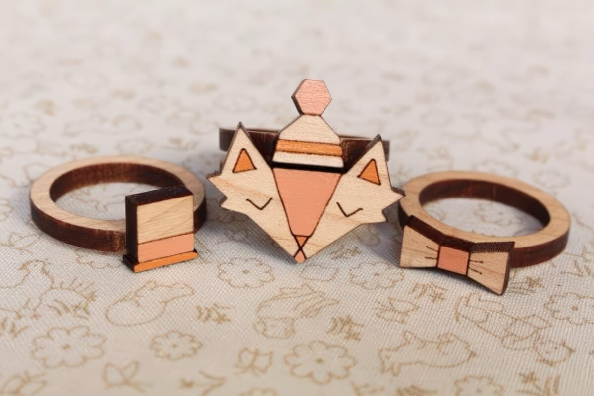 ست انگشتر چوبی طرح روباه مدل TH_67066