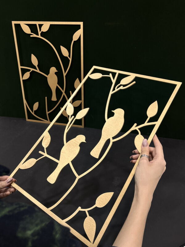 این تابلوها از چوب سه لایه با ضخامت 3 میلیمتر ساخته شدهاند که در عین ظرافت، دوام و استحکام بالایی دارند. طراحی دقیق شاخهها و پرندگان با خطوطی مینیمال و ساده باعث میشود این مجموعه به راحتی با دکوراسیونهای مدرن، مینیمال و حتی کلاسیک هماهنگ شود. این تابلوها نقطه کانونی دکوراسیون شما خواهند بود و حس طبیعت را به فضای داخلی منتقل میکنند. 🎨🏡