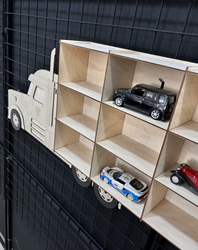 این شلف از چوب سهلایه با ضخامت ۳ میلیمتر ساخته شده است که علاوه بر وزن سبک، استحکام بالایی نیز دارد. طراحی خاص کامیون همراه با قفسههای متعددی که میتوان تعداد آنها را شخصیسازی کرد، باعث میشود این محصول جلوهای خاص و مدرن داشته باشد.
