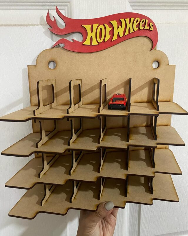 شلف از امدیاف خام با ضخامت مناسب ساخته شده و دارای چند طبقه و بخشهای جداکننده برای قرارگیری منظم ماشینهاست. لوگوی رنگی Hot Wheels در قسمت بالای شلف، محصول را خاص و بچگانه کرده است. لبهها با برش لیزری تمیز و بدون پرز اجرا شدهاند.