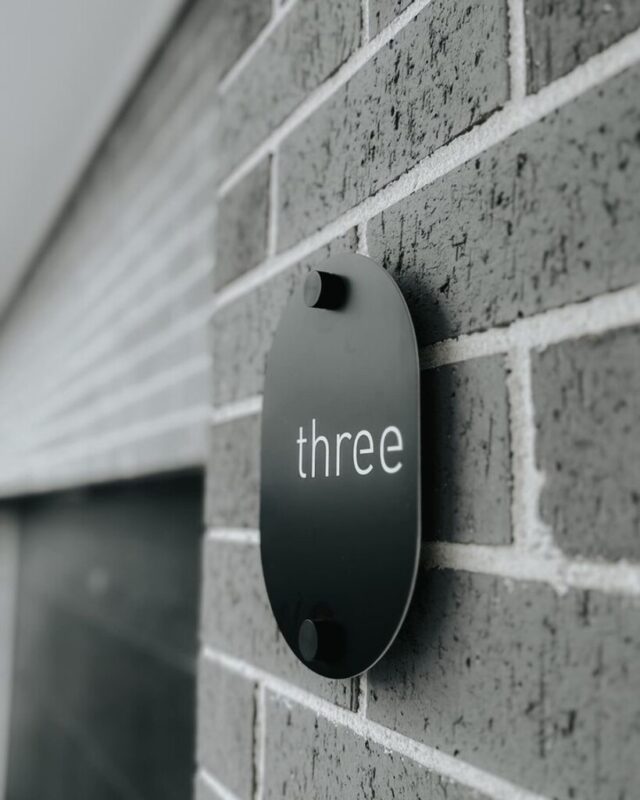 پلاک از پلکسی مشکی براق ساخته شده و به کمک دو اسپیسر فلزی یا پلاستیکی مشکی، با فاصله از دیوار نصب میشود. نوشتهها ظریف و دقیق اجرا شدهاند و جلوهای مینیمال ایجاد کردهاند.