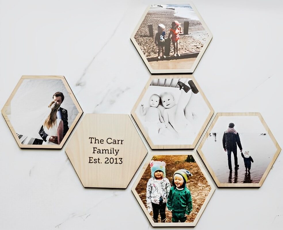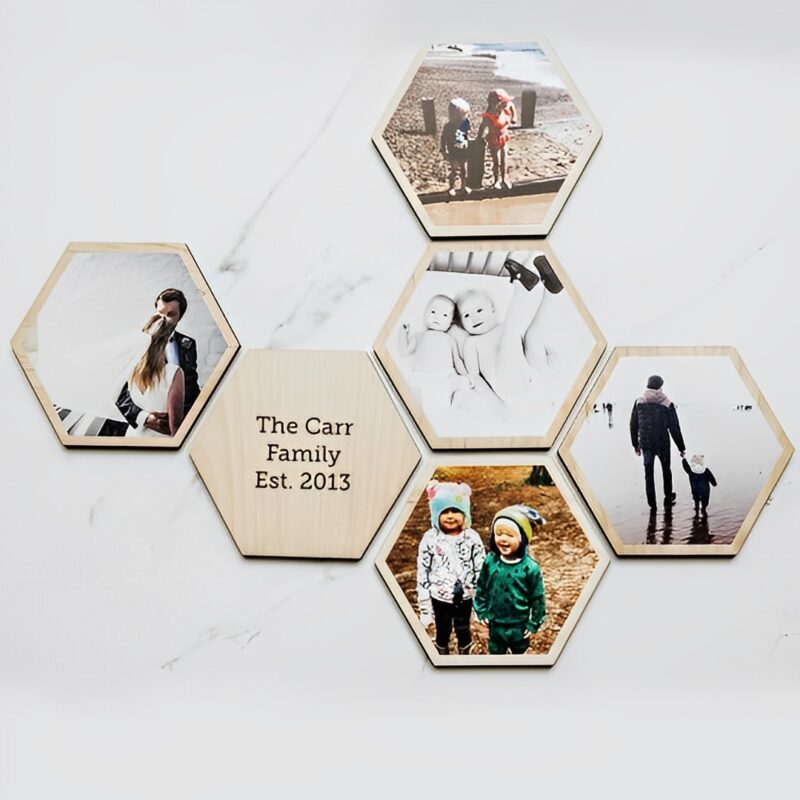 اگر به فکر خرید یک تابلو و یا یک قاب عکس شیک و خاص هستید قاب عکس طرح خاطره مدل TH_93352 طرح و هنر را به شما پیشنهاد می کنم. این قاب عکس زیبا دارای پنج قاب عکس 6 ضلعی و یک متن نوشته 6 ضلعی است. شما می توانید عکس و نوشته دلخواه تان را در روی این قاب عکس چوبی داشته باشید. فقط کافیست باکس قرار داده شده در سایت را پر کنید تا قاب عکس برش لیزری که به دست تان می رسد به صورت کاملا شخصی سازی شده باشد.