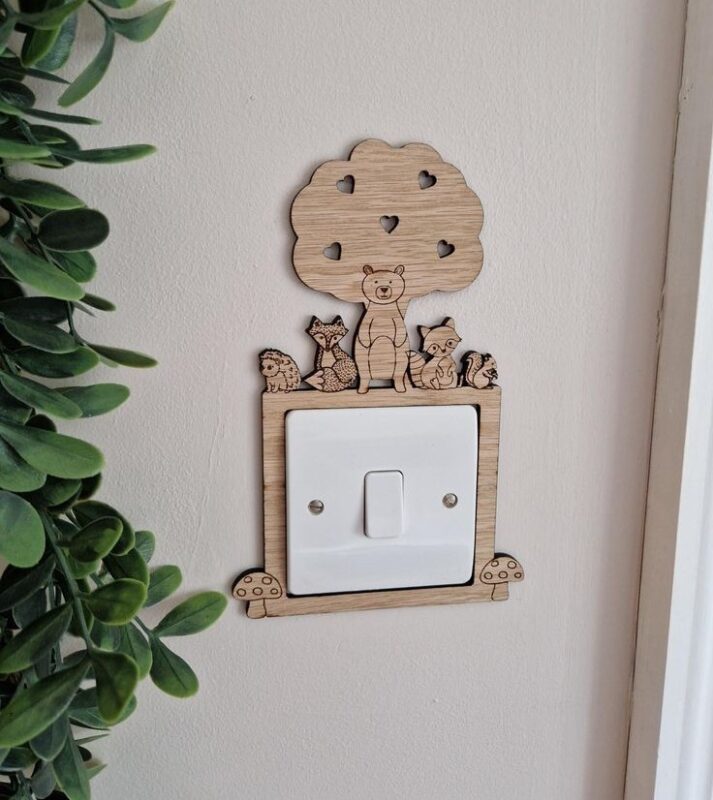 این محصول از امدیاف ۳ میلیمتری با کیفیت بالا ساخته شده و با دقت کامل به کمک برش و حکاکی لیزری آماده شده است. طرح درخت با قلبهای کوچک و حیوانات بامزه روی آن باعث میشود هر بار روشن و خاموش کردن چراغ برای کودک شما به تجربهای دوستداشتنی تبدیل شود 💡💖.