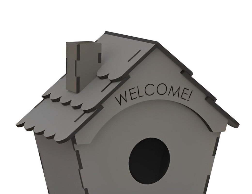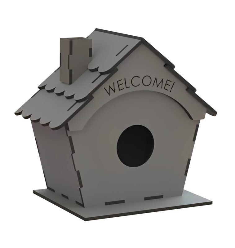 این ماکت چوبی به صورت کلبه خاکستری طراحی شده و در بالای ورودی لانه عبارت !welcome حکاکی شده است. همچنین می توانید از این ماکت سه بعدی برش لیزری برای تزیین دکوراسیون خانه و یا محیط تان استفاده کنید.