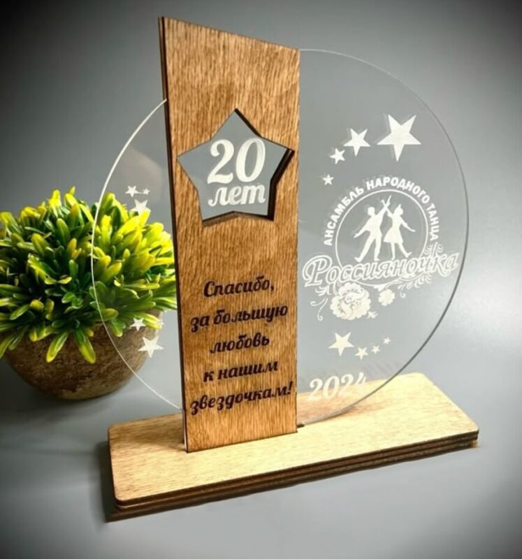 لوح تقدیر جشن سالگرد یک انتخاب منحصربهفرد برای قدردانی، یادبود و ثبت خاطرههای ارزشمند در مراسمهای سالگرد، جشنها و رویدادهای خاص است. این تندیس ترکیبی از چوب سه لایه مرغوب و پلکسی شفاف بوده که جلوهای مدرن و چشمگیر به آن داده است. طراحی خلاقانه با ترکیب فرم ستاره، پایه چوبی مستحکم و صفحه پلکسی شفاف، باعث میشود هر متنی که روی آن حک میشود به زیبایی و وضوح دیده شود. 🌟✨