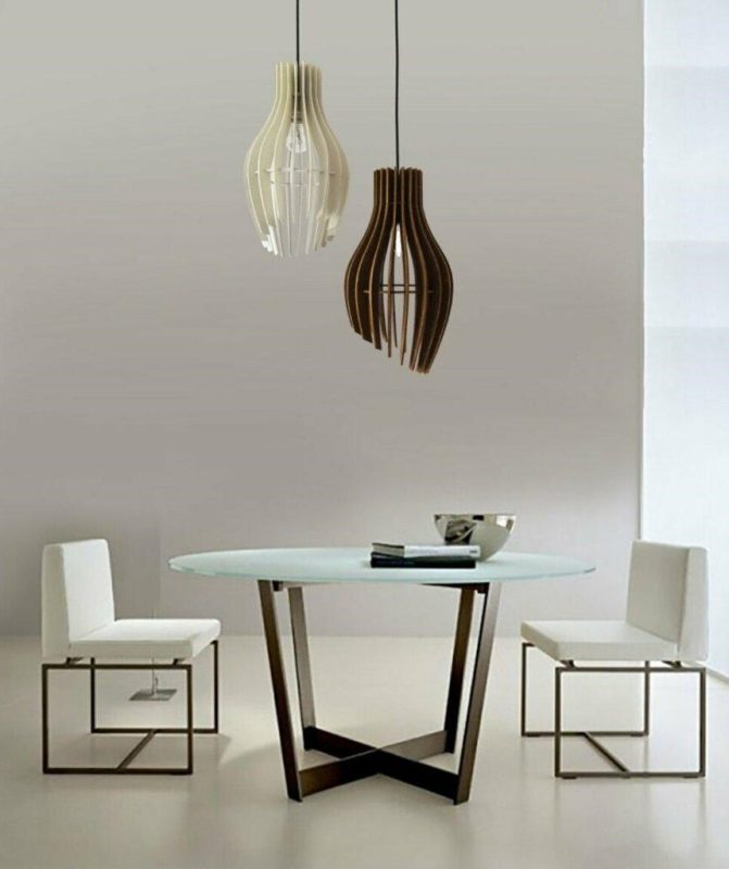 لوستر چوبی برش لیزری در طرح خاص از متریال ام دی اف سه میلیمتر با رنگ بندی متفاوت بسیار شکیل که میتواند جلوه خاصی به منزل یا محل کار شما ببخشد