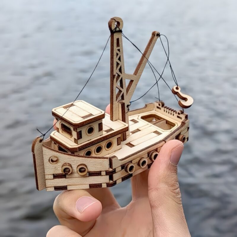 وجود جزییات کوچک مثل کابین، جرثقیل و قلاب متحرک، این ماکت را به یک اثر هنری کوچک و دوستداشتنی تبدیل کرده که میتونه الهامبخش خلاقیت و رویاپردازی کودکان باشه و حس نوستالژیک دنیای دریانوردی رو به هر کسی منتقل کنه.