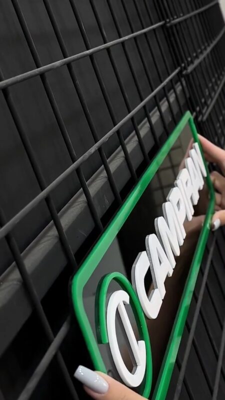 طراحی برجسته لوگو و نوشته با ترکیب رنگ مشکی، سفید و سبز در کنار قاب رنگی خاص، باعث شده تا این تابلو بهراحتی جلب توجه کنه و به عنوان یک عنصر هویتی قدرتمند در دکور یا تبلیغات فضای شما بدرخشه. لوگو بهصورت برجسته روی زمینه مشکی نصب شده و تمام قطعات با دستگاه برش لیزر با دقت بالا آماده شدهاند.
