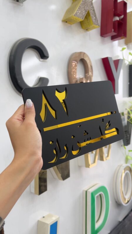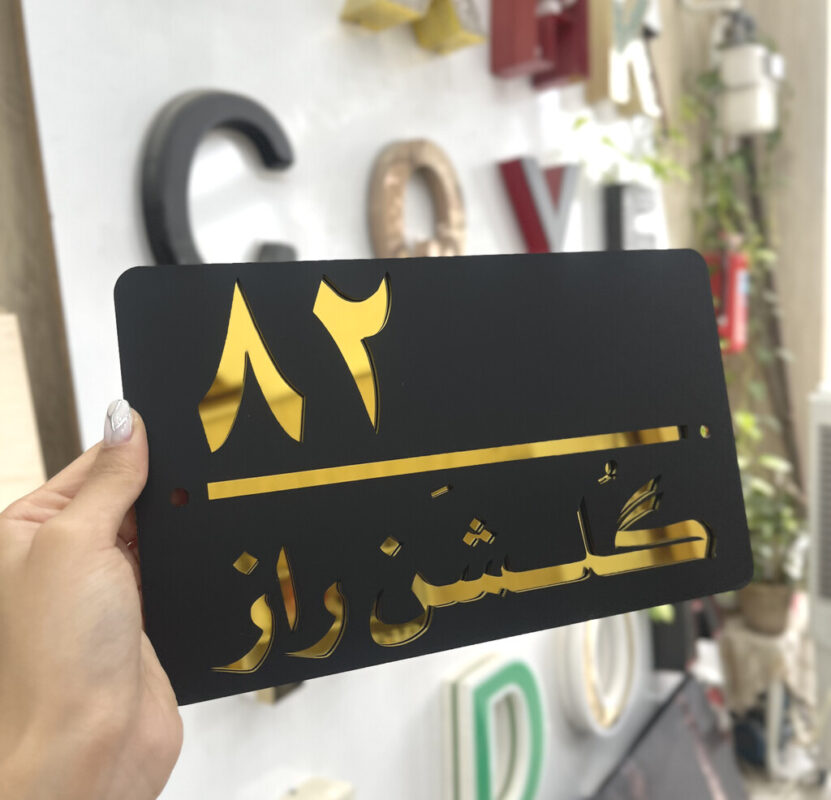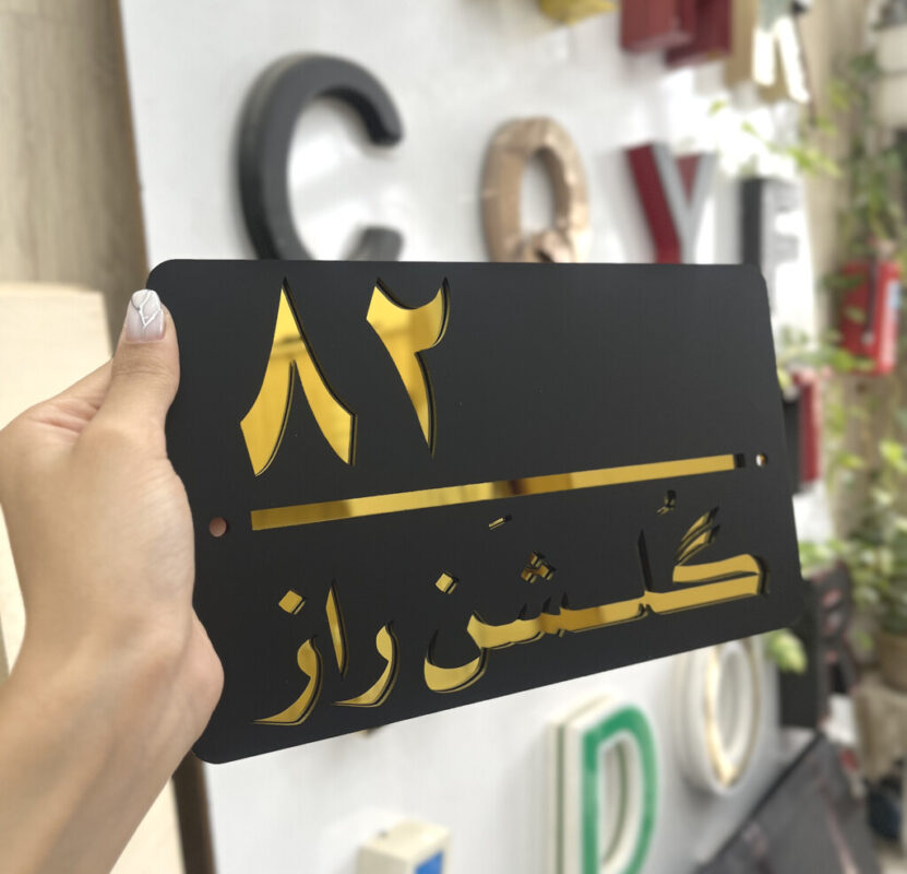 این پلاک از جنس پلکسی با ضخامت ۳ میلیمتر ساخته شده است. طراحی دقیق و برشهای تمیز، به همراه امکان ترکیب رنگهای مات و براق، باعث میشود این پلاک برای هر نوع دکوراسیونی مناسب باشد. 🌟