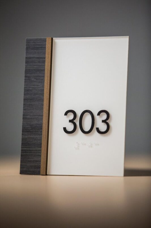طراحی این پلاک به گونهای است که عدد شماره واحد به صورت برجسته و کاملا خوانا روی زمینه سفید قرار گرفته و توجه هر بینندهای را جلب میکند. وجود نوار باریک طلایی رنگ در حاشیه، جذابیت کار را دوچندان کرده است. همچنین به منظور دسترسی بهتر افراد نابینا، خطوط بریل زیر عدد درج شدهاند که نشان از دقت و کیفیت تولید این محصول دارد. 💎