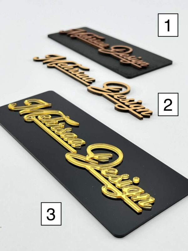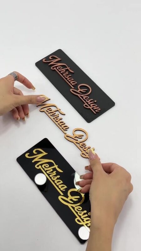 نوشته یا لوگوی شما با دقت بالا از چوب سهلایه برش میخوره و روی زمینهای از پلکسی مشکی براق یا مات قرار میگیره. این ترکیب جذاب، تضاد بصری دلنشینی ایجاد میکنه که هم در محیطهای مینیمال مدرن و هم در فضاهای گرم و چوبی جلوهی خاصی داره. علاوه بر چوب، امکان استفاده از پلکسی آینهای طلایی برای لوگو هم فراهمه، تا متناسب با سبک برند شما شخصیسازی بشه 😍