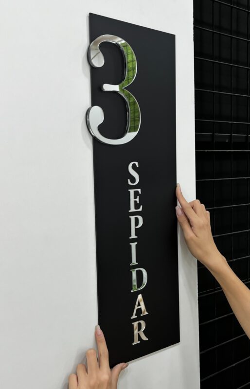 پلاک واحد مشکی نقره ای با رنگهای متضاد و جذاب خود، جلوهای خاص و مدرن دارد. جنس این محصول از پلکسی با کیفیت بالا تهیه شده. طراحی این آیتم به گونهای است که به راحتی با دکوراسیون مدرن و کلاسیک هماهنگ میشود.