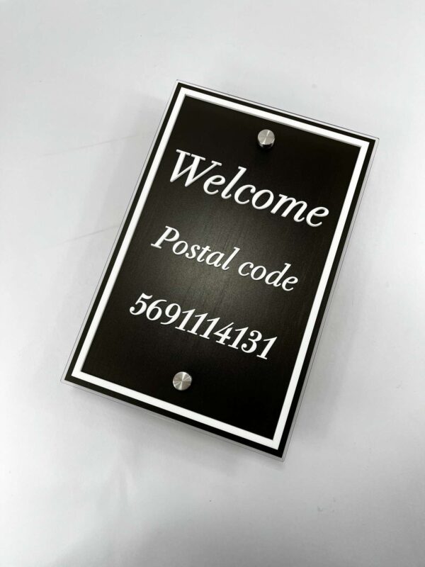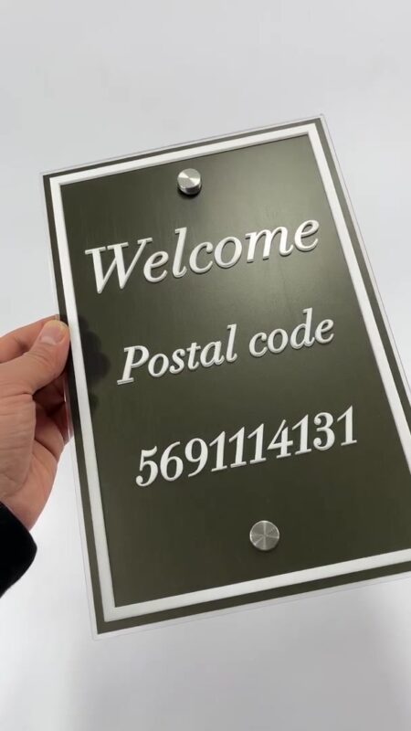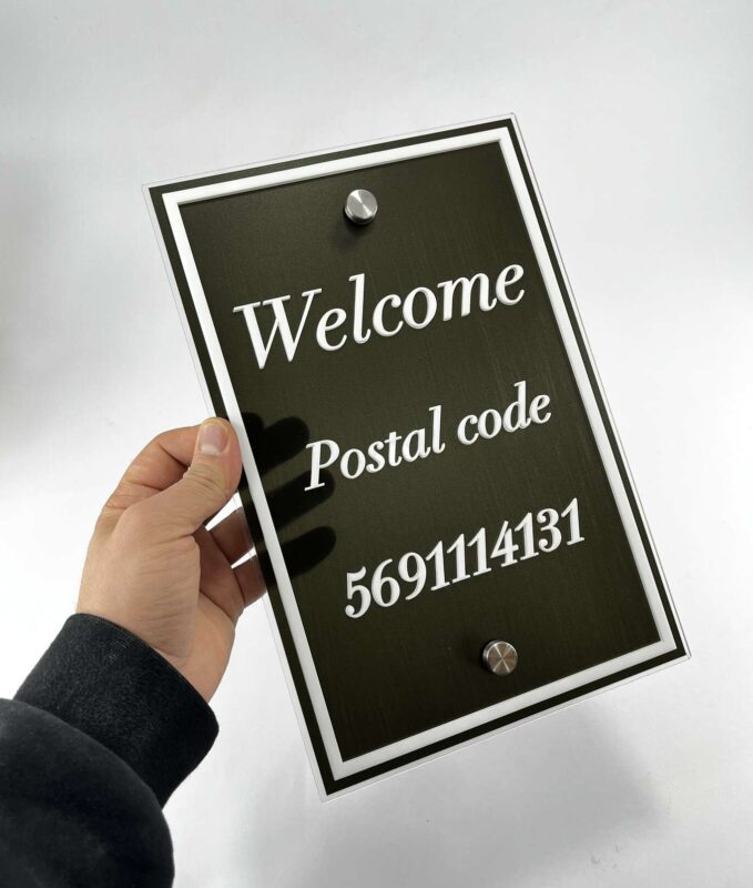 برای ورودی خانه، ویلا، دفتر کار، فروشگاه یا هر فضایی که بخواید با یک تابلوی خاص خوشآمد بگید و همزمان اطلاعات کدپستی رو بهصورت رسمی و زیبا نمایش بدید.