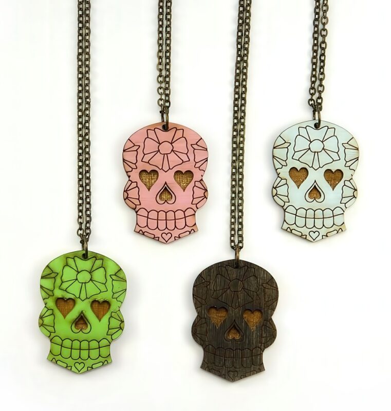 ساخته شده از چوب سهلایه باکیفیت، حکاکی لیزری دقیق طرح جمجمه، رنگآمیزی دستی در رنگهای متنوع، زنجیر فلزی مقاوم و سبک.