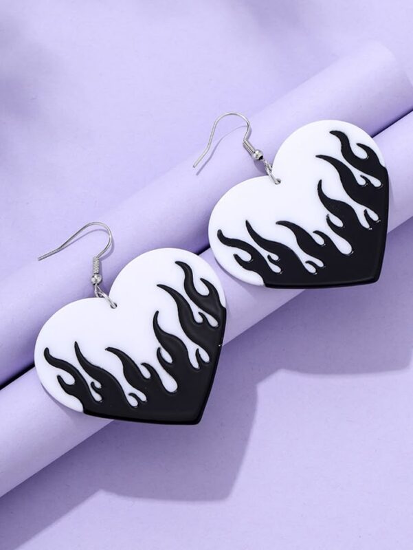 گوشواره بهشکل قلب سفید طراحی شده که از نیمه پایینش شعلههایی مشکی با برش برجسته بالا اومدن. ترکیب دو رنگ سفید و مشکی، ظاهر مدرن، شیک و در عین حال فانتزی ایجاد کرده که توی هر نوری میدرخشه.