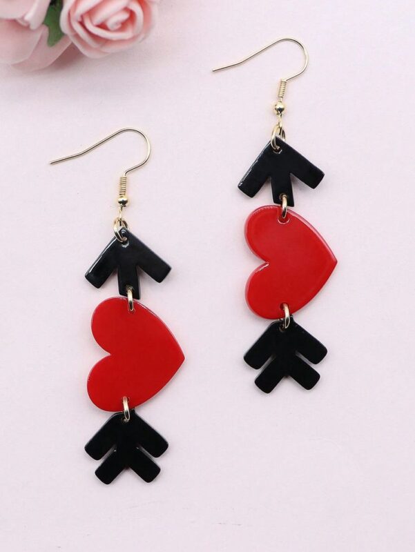گوشواره ولنتاینی قرمز مشکی مدل TH_36220