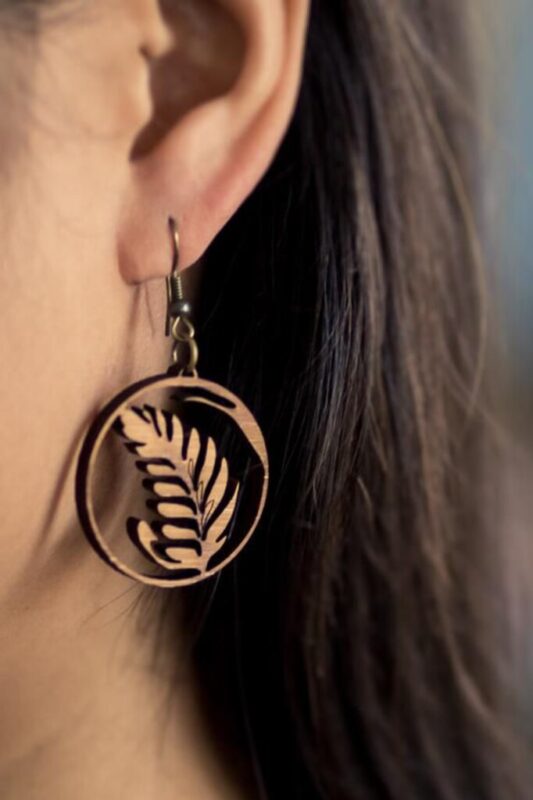 این گوشواره به شکل دایرهای با برش ظریف طرح برگ ساخته شده و رنگ طبیعی چوب جلوهای گرم و دوستداشتنی به اون داده است. سبک، ظریف و بسیار خوشفرمه.