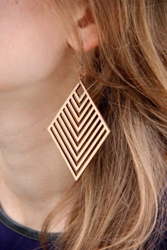 این گوشواره دارای طرح لوزی بزرگ با خطوط لایهلایه و زاویهدار است که با دستگاه لیزر از چوب سهلایه برش خورده. رنگ چوب طبیعی و فرم هندسی خاص آن، جلوهای مدرن و جذاب ایجاد کرده و قفل فلزی با کیفیت بالا به آن متصل شده است. مناسب برای خانمهایی که دنبال استایل یونیک و خاص هستند.